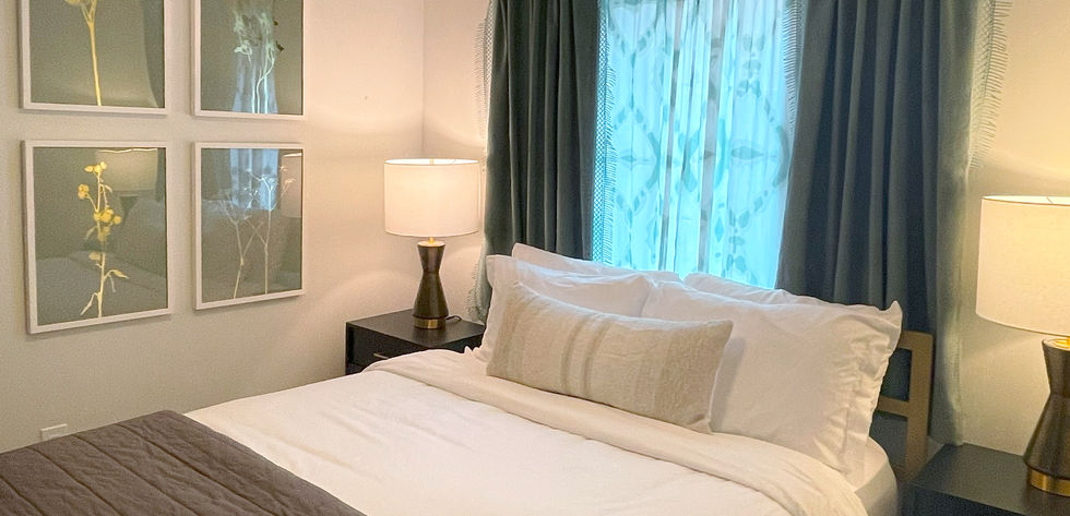 Designed in soft blush, warm creams, and delicate textures, this nursery feels like a gentle exhale. Deep teal curtains and aqua crystal knobs add a subtle pop of color and personality, creating a dreamy, light-filled retreat for both mother and baby. Every detail was chosen to feel calm, warm, and effortlessly beautiful—perfect for quiet moments and sweet beginnings.
